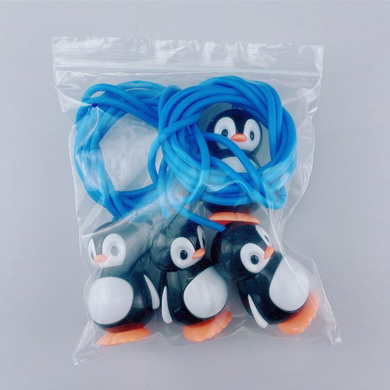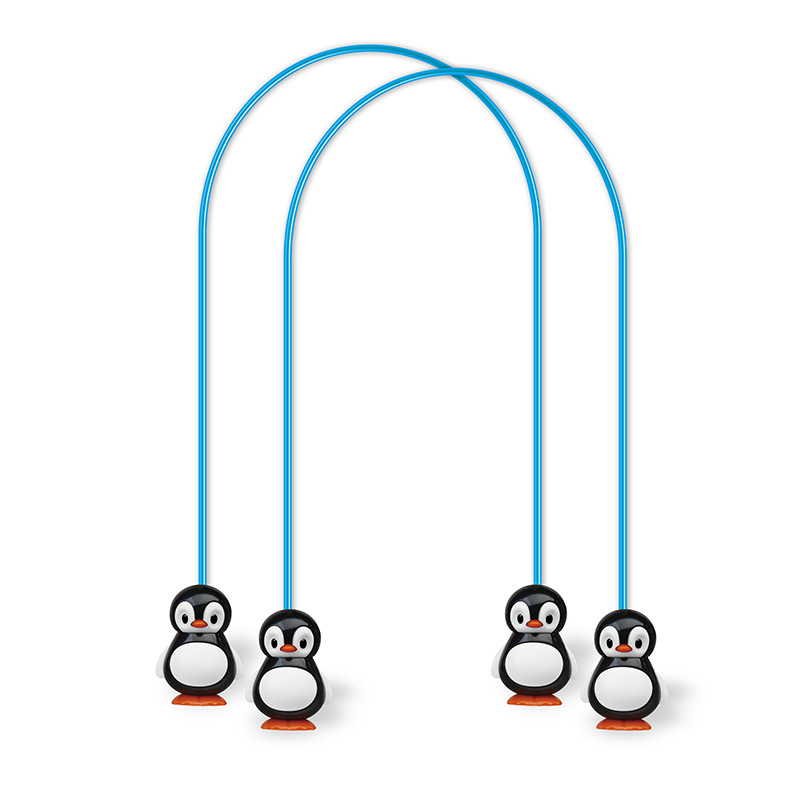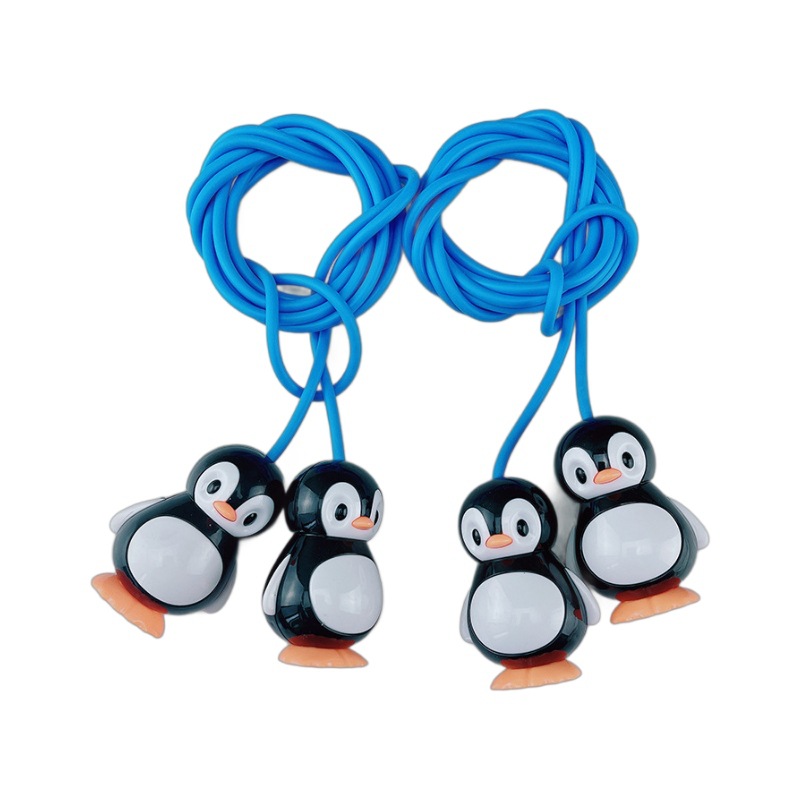 可愛らしいペンギンの形をした持ち手が特徴的な二人用縄跳びのおもちゃです。