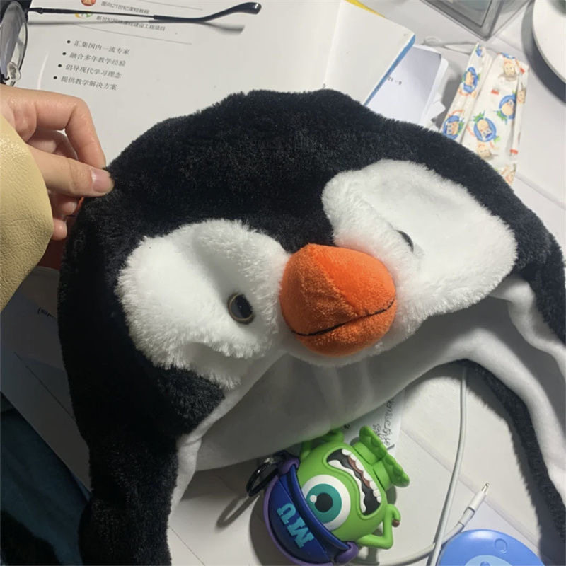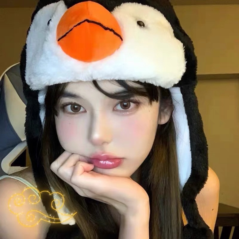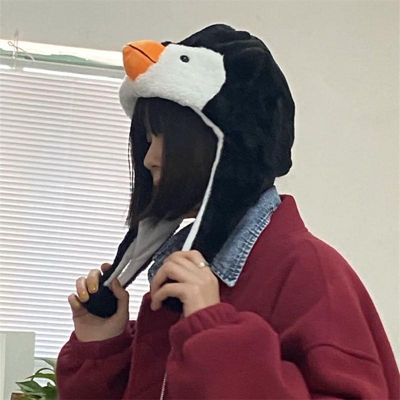 可愛らしいペンギンの顔をデザインした被り物タイプの帽子です。 ふわふわのもこもこ素材で作られており、頭からすっぽり被ることができます。 耳当て部分は長めに垂らして防寒対策にもなり、ペンギンぬいぐるみのような愛らしさを演出できます。 ペンギングッズとして普段使いはもちろん、パーティーやイベントでも大活躍する服です。 被るだけでペンギンに変身できる楽しいアイテムとなっています。