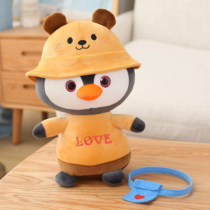 可愛い動物の帽子をかぶったペンギンぬいぐるみのふわふわシリーズです。